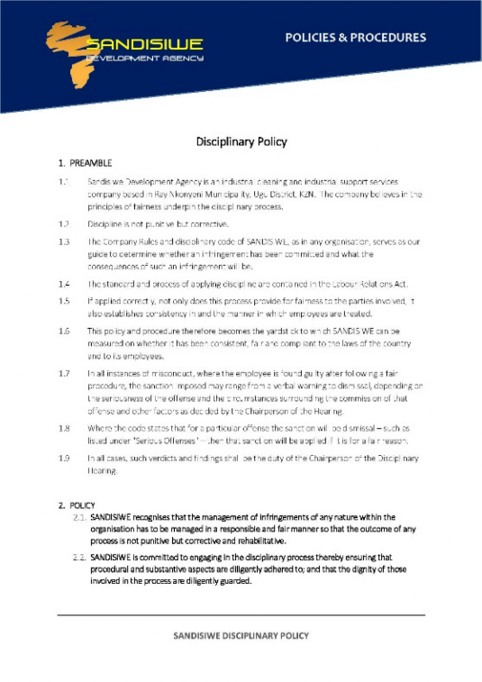 These policies, while still in its development stage is available for your inspection. They are based on current South African legislation.